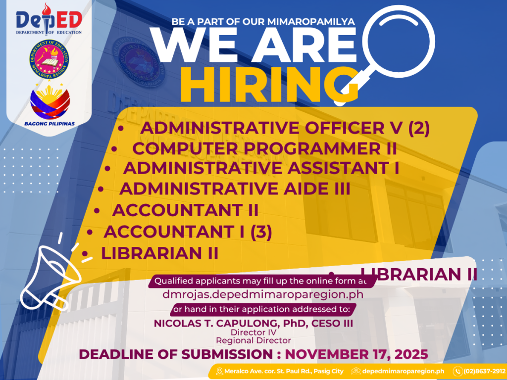 NOTE: QUALIFIED APPLICANTS are advised to register at the dmrojas.depedmimaroparegion.ph and follow the instructions on online submission through the site